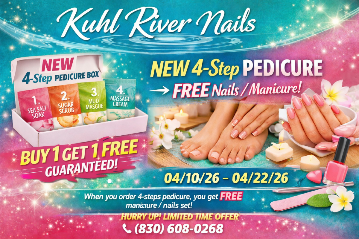 Come visit New Braunfels' one of the newest destination for Nails, Waxing, Eyelash Extensions and Spa Pedicures Your safety is our top priority. Our implements, equipment, and electrical instruments are always thoroughly cleaned and subjected to an approved sanitizing and disinfecting process before being reused. Buffers and files are used only once, then discarded. All pedicure procedures are performed with liner protection. You can leave 100% belief in us.