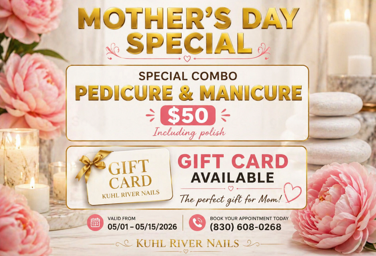 Treat yourself to a comforting warm water soak, followed by nail trimming, shaping, and cuticle cleaning. Enjoy a soothing massage and polish of your choice.